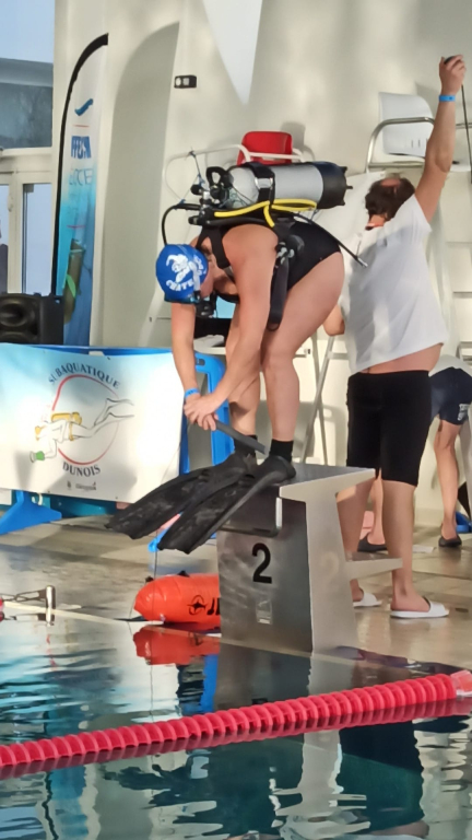 Le Subaquatique Dunois, c’est aussi l’inclusion des personnes en situation de handicap. Louise a pu ainsi participer à sa première compétition de PSP grâce à sa monitrice, Marie-Claire BEHEM. Louise a été ovationnée par les compétiteurs et les spectateurs présents.